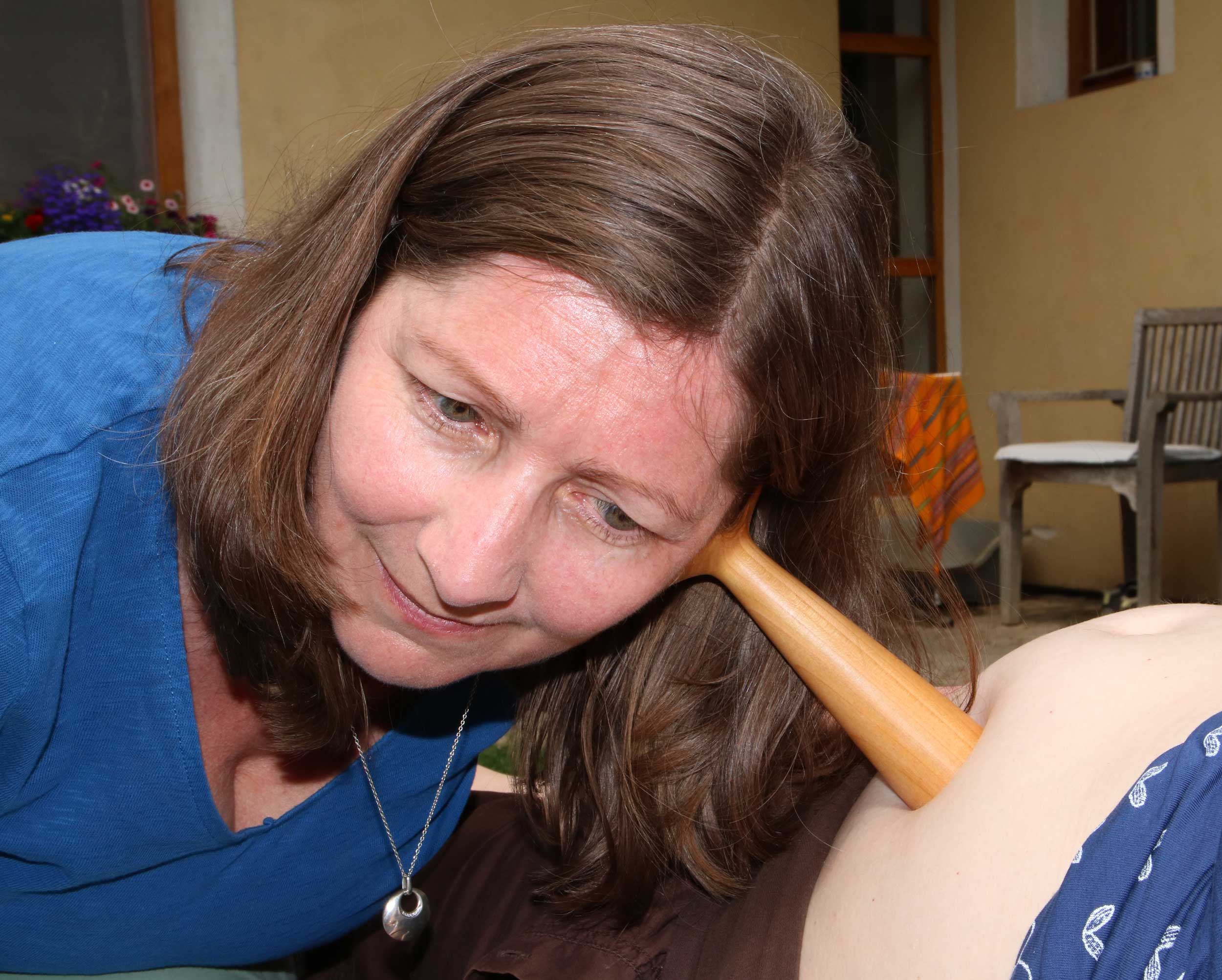 Aus hochwertigem Holz drechseln wir ein Holz-Stethoskop, dass auch unter dem Namen Pinard'sches Hörrohr bekannt ist. Wir haben die Form des Rohres noch etwas optimiert. Mit dem Hörrohr können Sie die Herztöne des Babys im Bauch hören. Sie setzen das Rohr auf den Bauch und mit etwas Geduld können Sie die Herztöne hören. Ideal wäre, wenn Ihnen beim ersten Versuch eine Hebamme zur Seite steht. Die Herztöne können Sie in etwa ab der 24. Schwangerschaftswoche hören. Auf dem Foto sehen Sie Hebamme Gunda Gutscher mit dem Hörrohr.